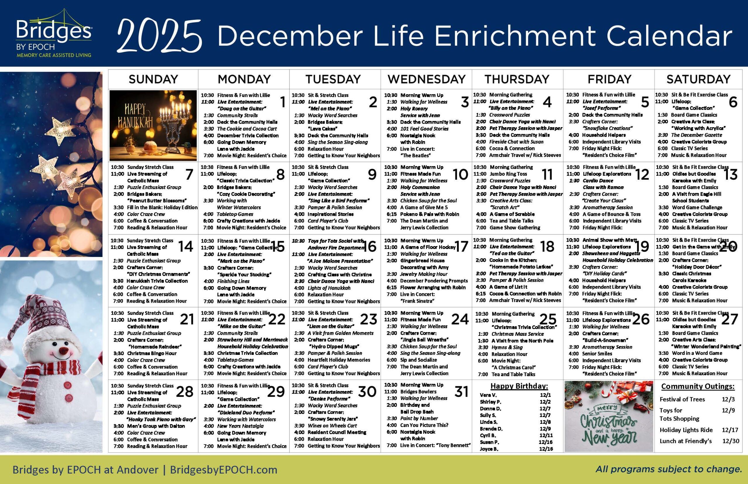 With highly individualized support and uplifting programs, the remarkable team at Bridges® by EPOCH at Andover honors residents’ rights to age in place with happiness, dignity and respect. By connecting to the person inside, we create meaningful relationships that allow us to provide the best care to our residents – through all stages of memory loss.