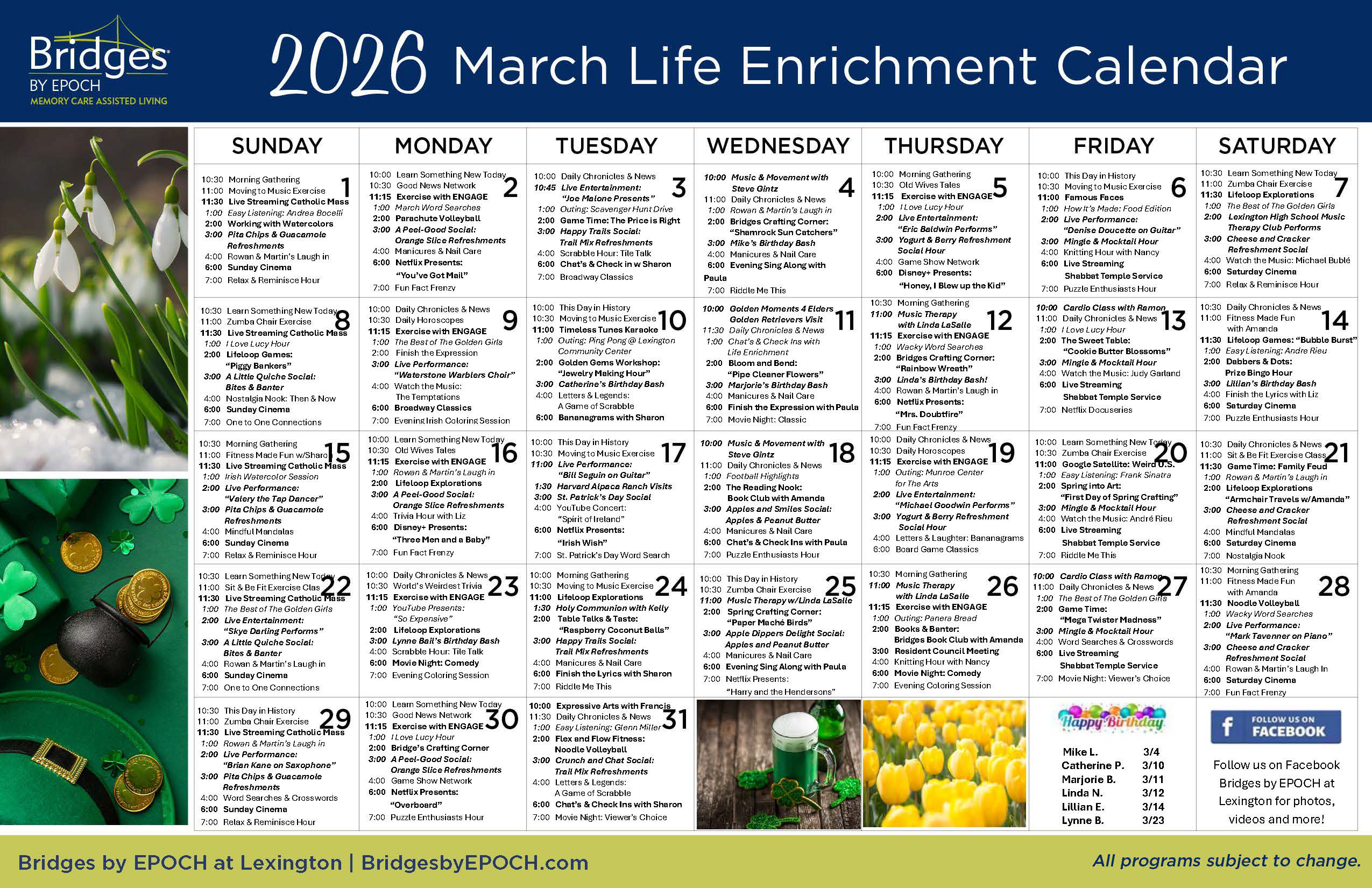 The team at Bridges®by EPOCH at Lexington believes that nobody should face the challenges of memory loss alone. Our Senior Advisors are warm, educated and available to provide helpful resources, education and support for those caring for a loved one with Alzheimer’s disease and other forms of dementia.