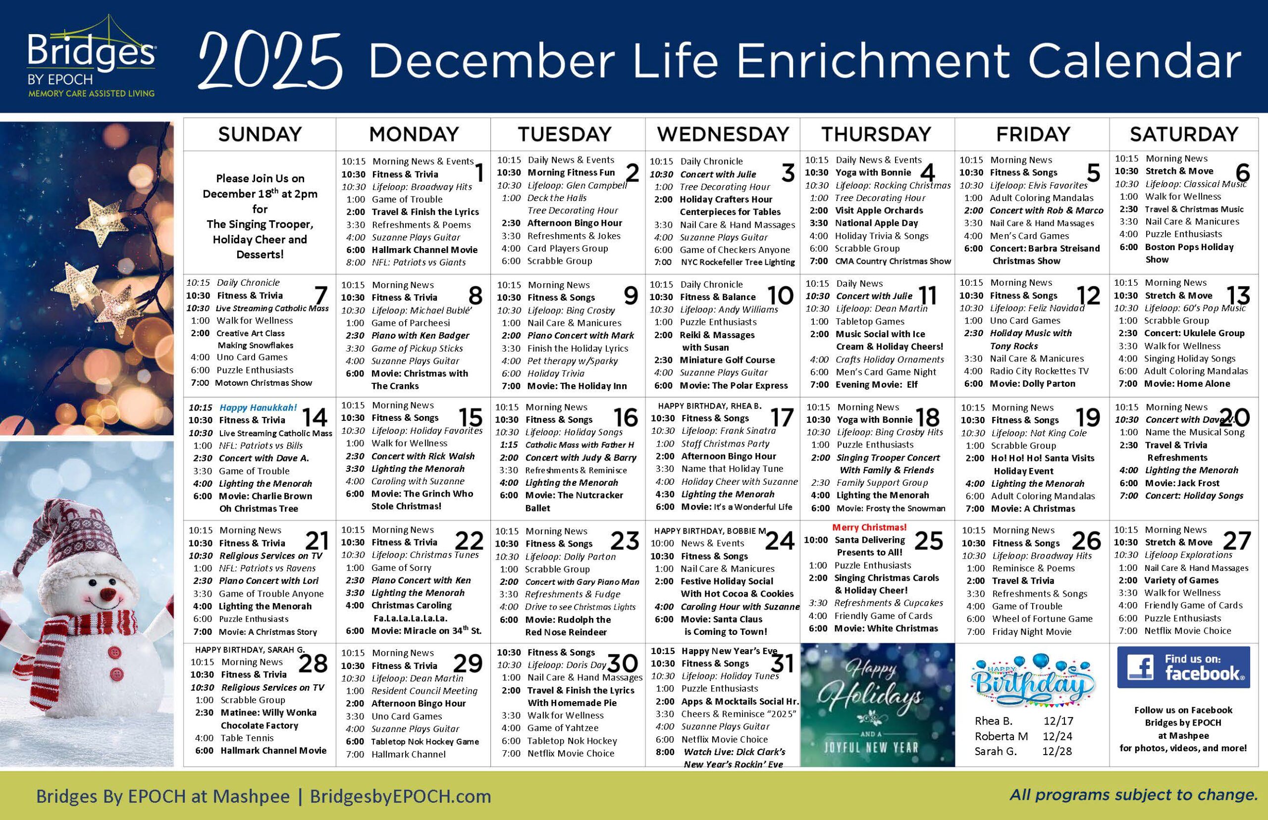 Designed exclusively to support those living with Alzheimer’s disease and other forms of dementia, Bridges® by EPOCH at Mashpee is a purposefully designed memory care assisted living community. Our life-enriching philosophy is the hallmark of our exceptional care.