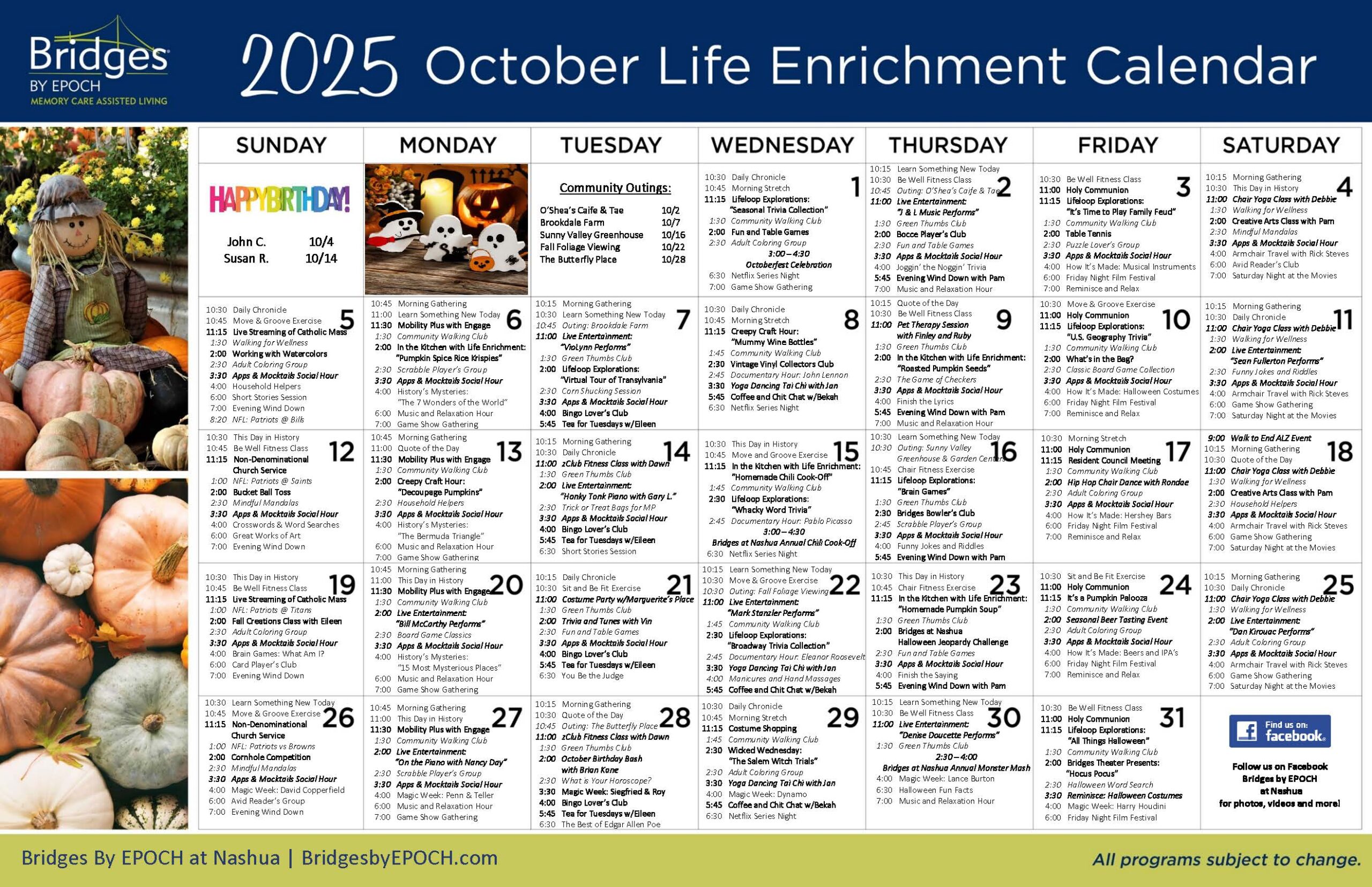 Our compassionate memory care experts at Bridges® by EPOCH at Nashua all share one important goal – to mark this period in our residents’ lives with notable moments of purpose, peace and joy not typically associated with dementia.