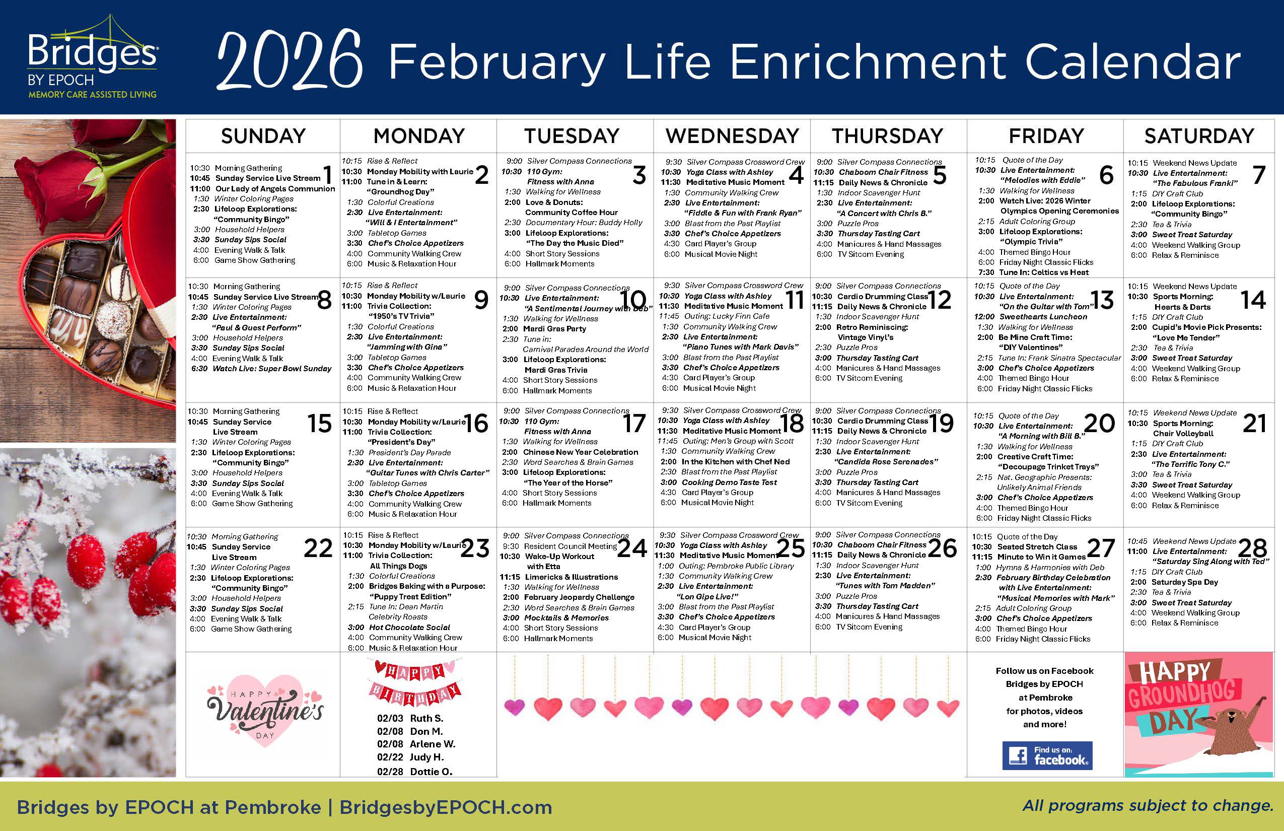 Bridges® by EPOCH at Pembroke is a memory care assisted living community that provides much more than a safe place to live; it delivers a lifestyle that encourages independence, values choice and boosts self-esteem. Residents benefit from the best care with around-the-clock support and on-site licensed nursing, delicious dining, wellness-focused programs and meaningful relationships – all within a purposefully designed community that supports the unique needs of those with Alzheimer’s disease and other forms of dementia.