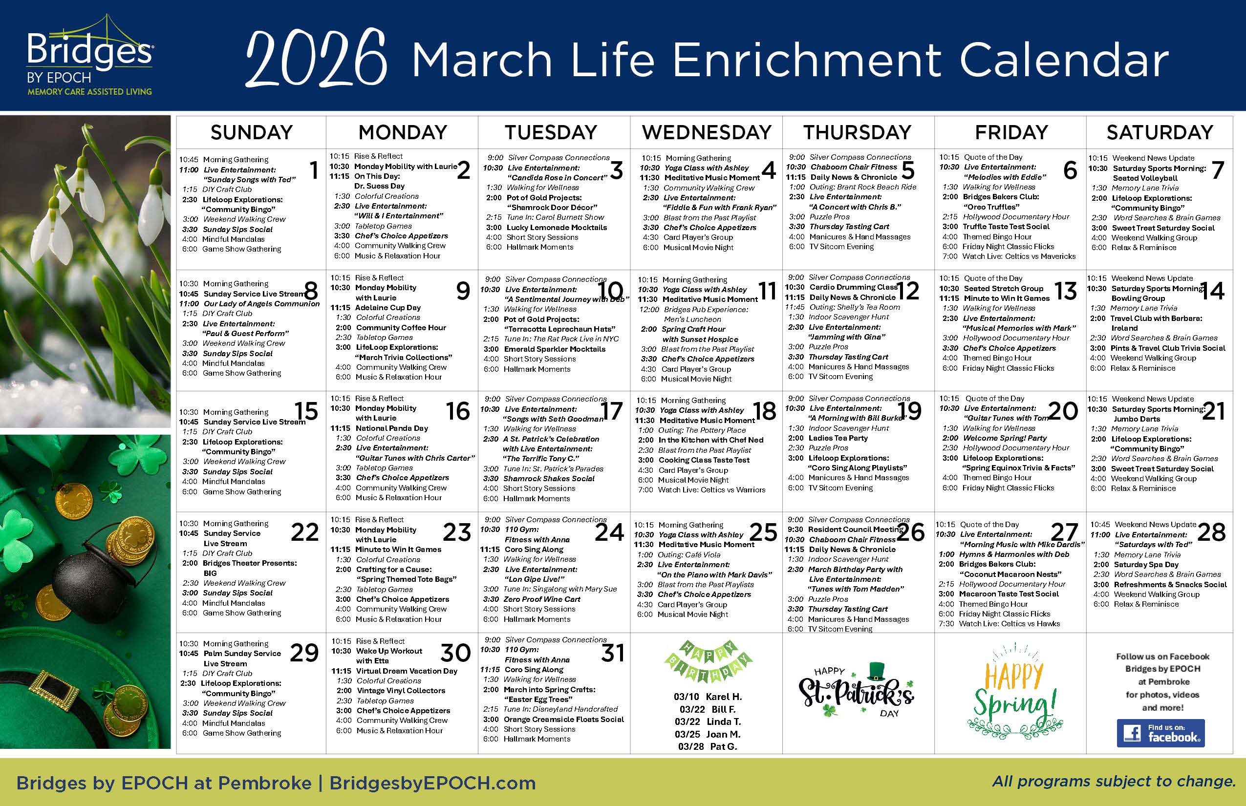 My mom is in Bridges by EPOCH at Trumbull. It's all excellent. We were very impressed. It's very clean. They have a lot of programs that deal with memory care. The food is excellent. I give it two thumbs up. My mom likes listening to music. She's got dementia very badly, so that is pretty much ...