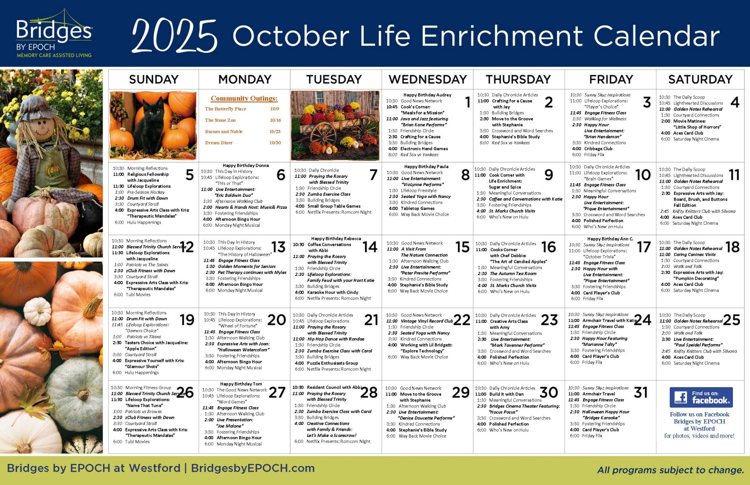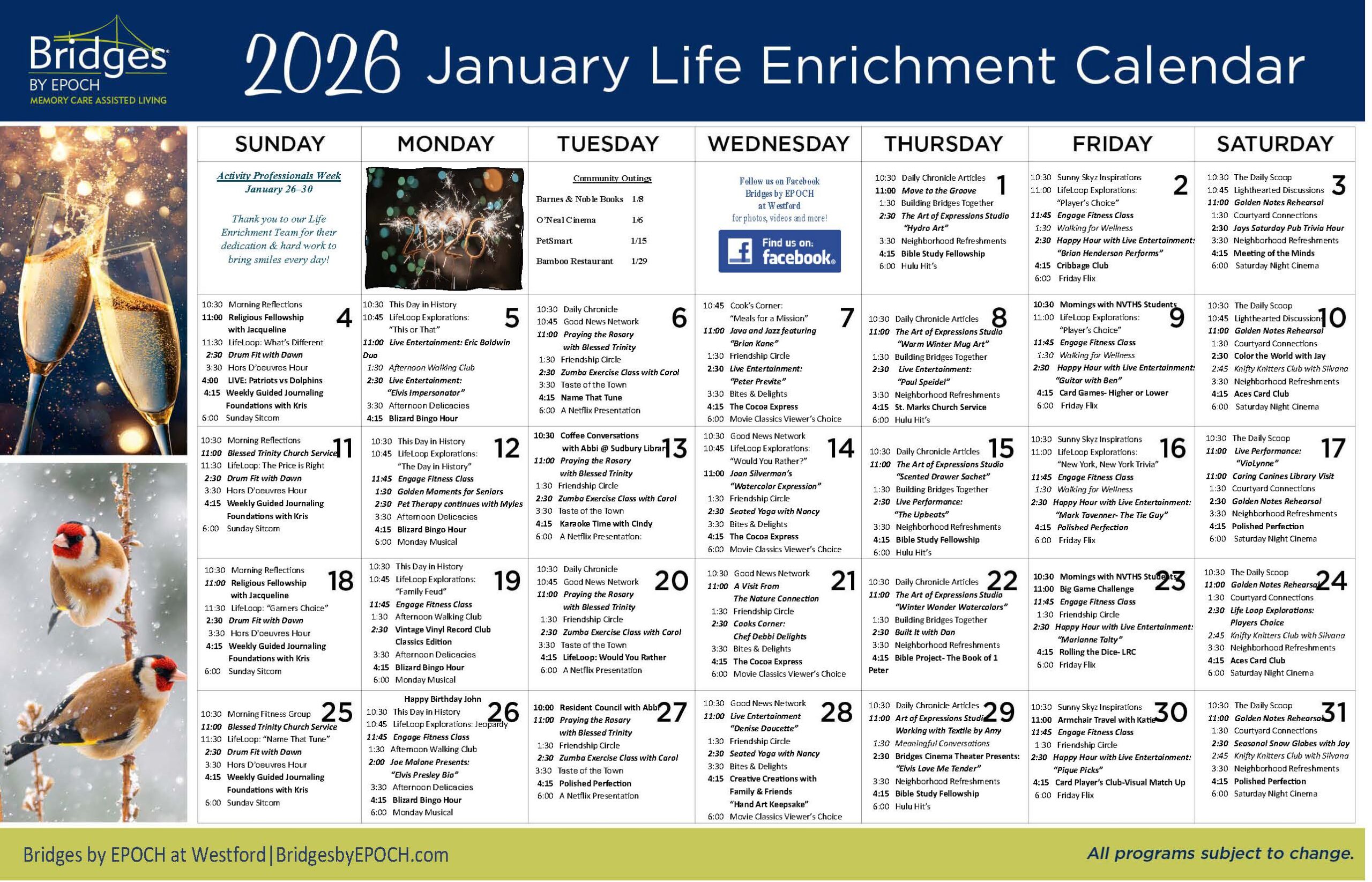 Bridges® by EPOCH at Westford is divided into three secure households – The Nashoba, The Concord and The Sudbury – each featuring comfortable common spaces that provide a warm feeling of home. Our community offers beautifully designed private and companion suites – all with private bedrooms.