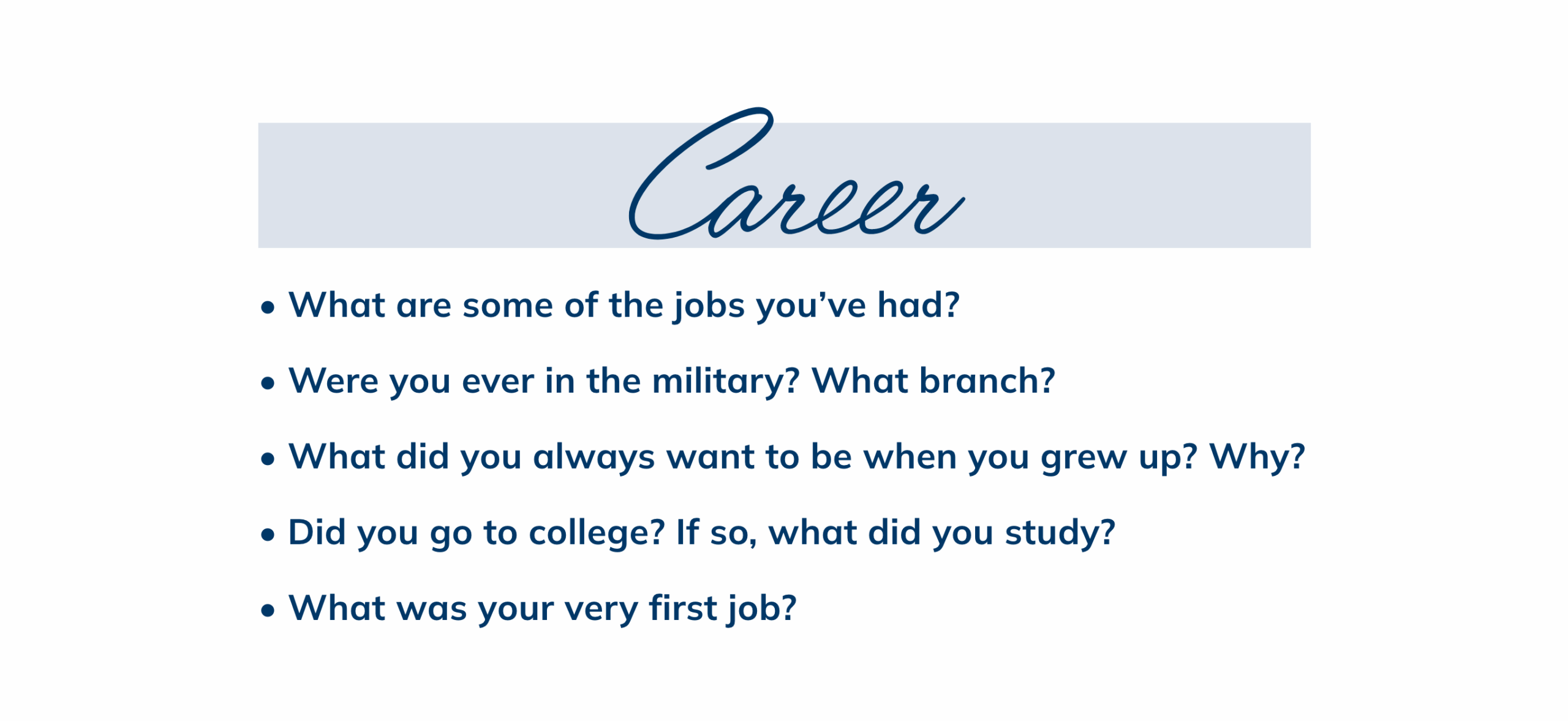 We also created some helpful conversation cards. Remember to stay patient and give your loved one plenty of time to articulate their answers.